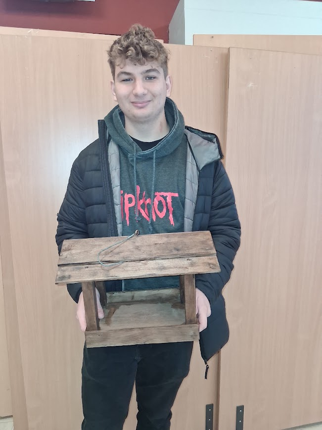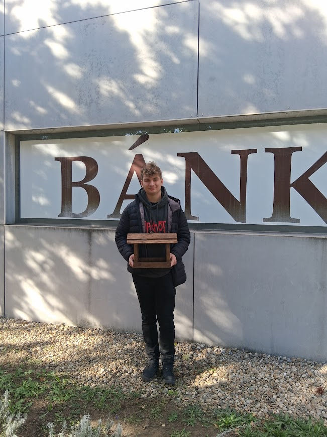 Az állatvédelmi témahétre Szecs Csaba egy saját készítésű, gyönyörű madáretetővel lepte meg az iskolát. Osztálytársai, a 12.B-sek pedig vállalják, hogy egész télen feltöltik elegendő eleséggel a házikót.