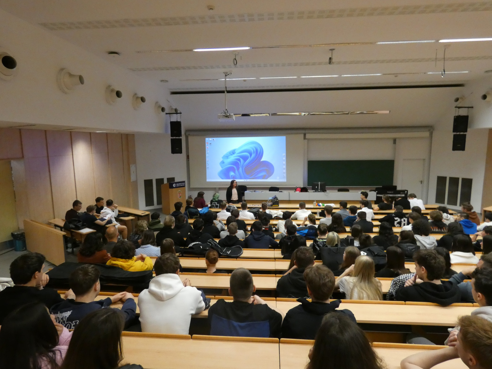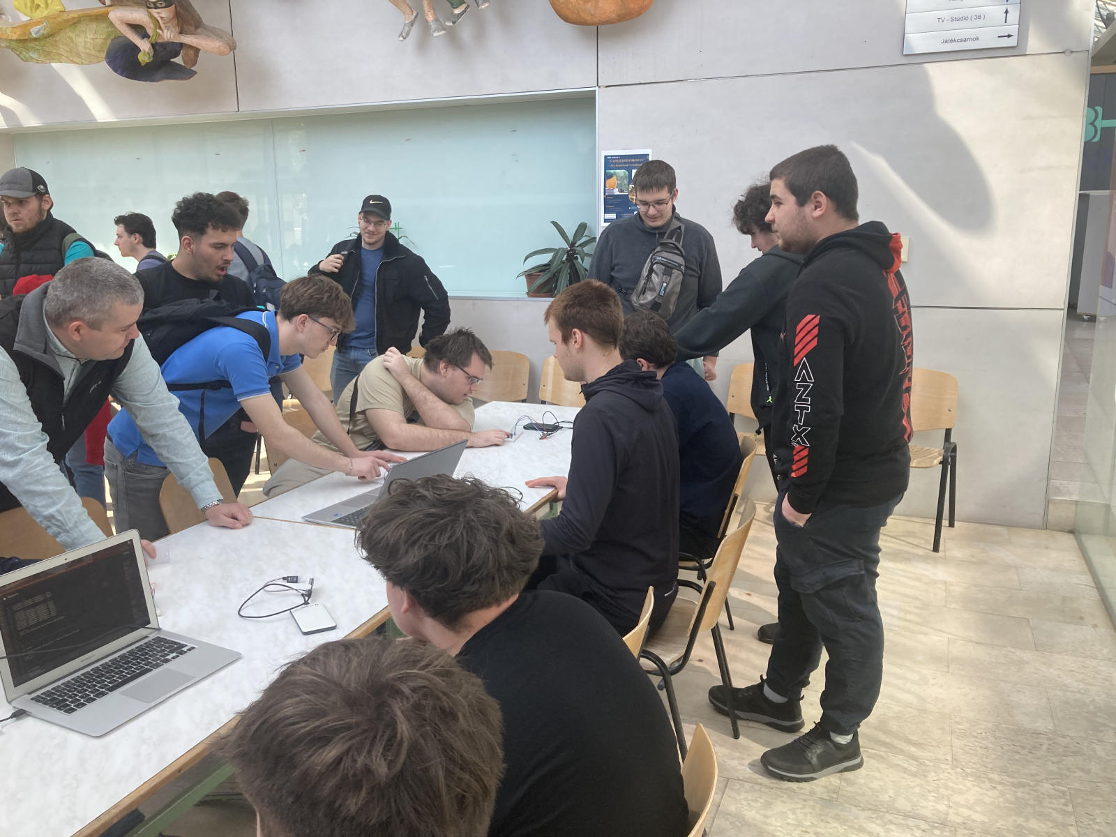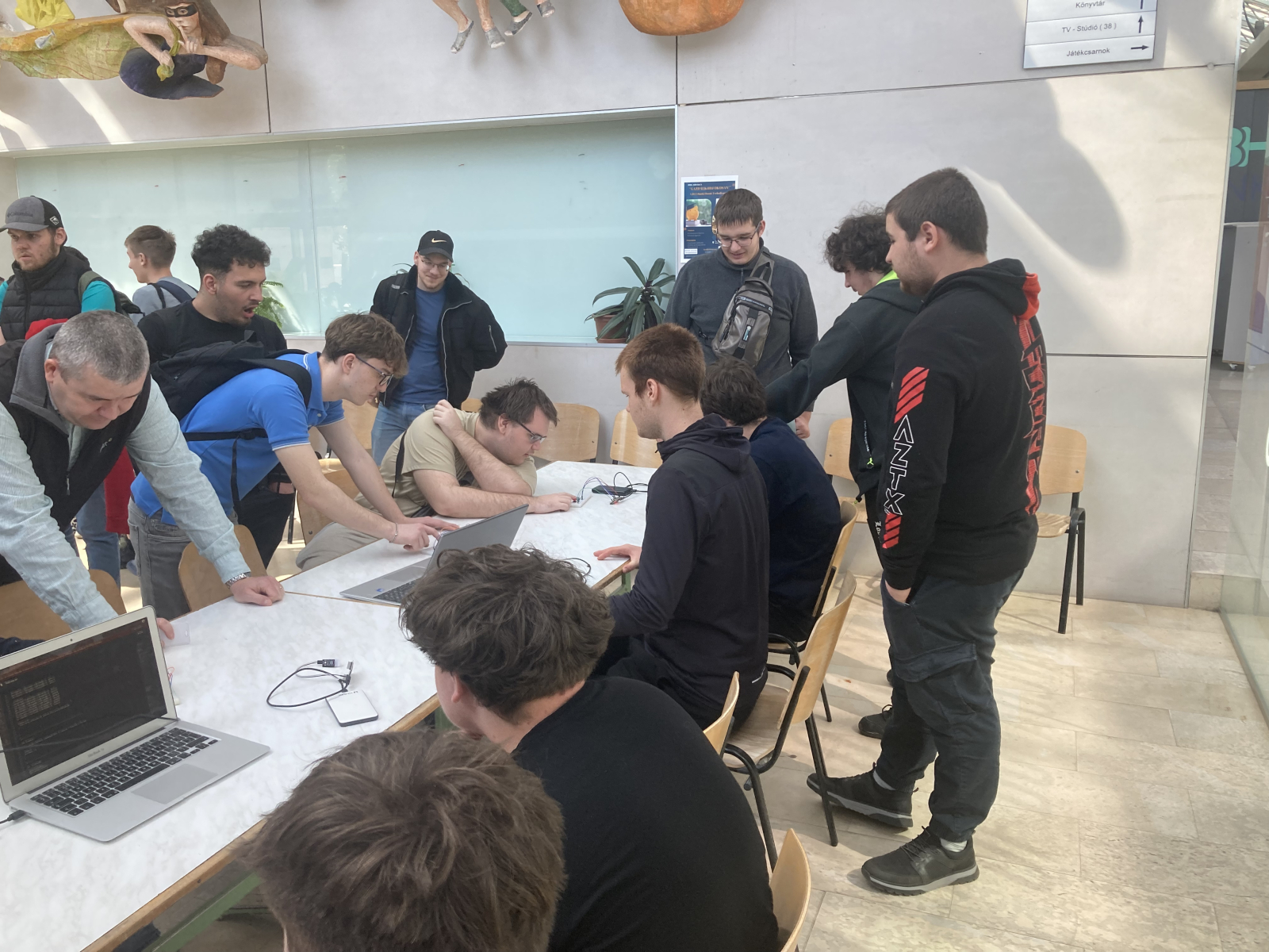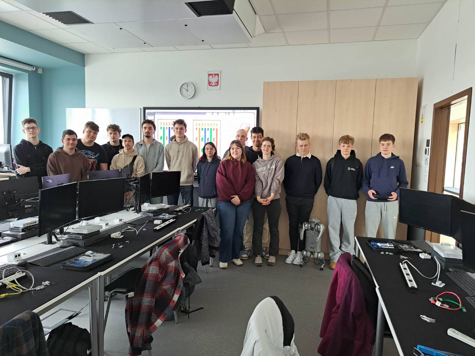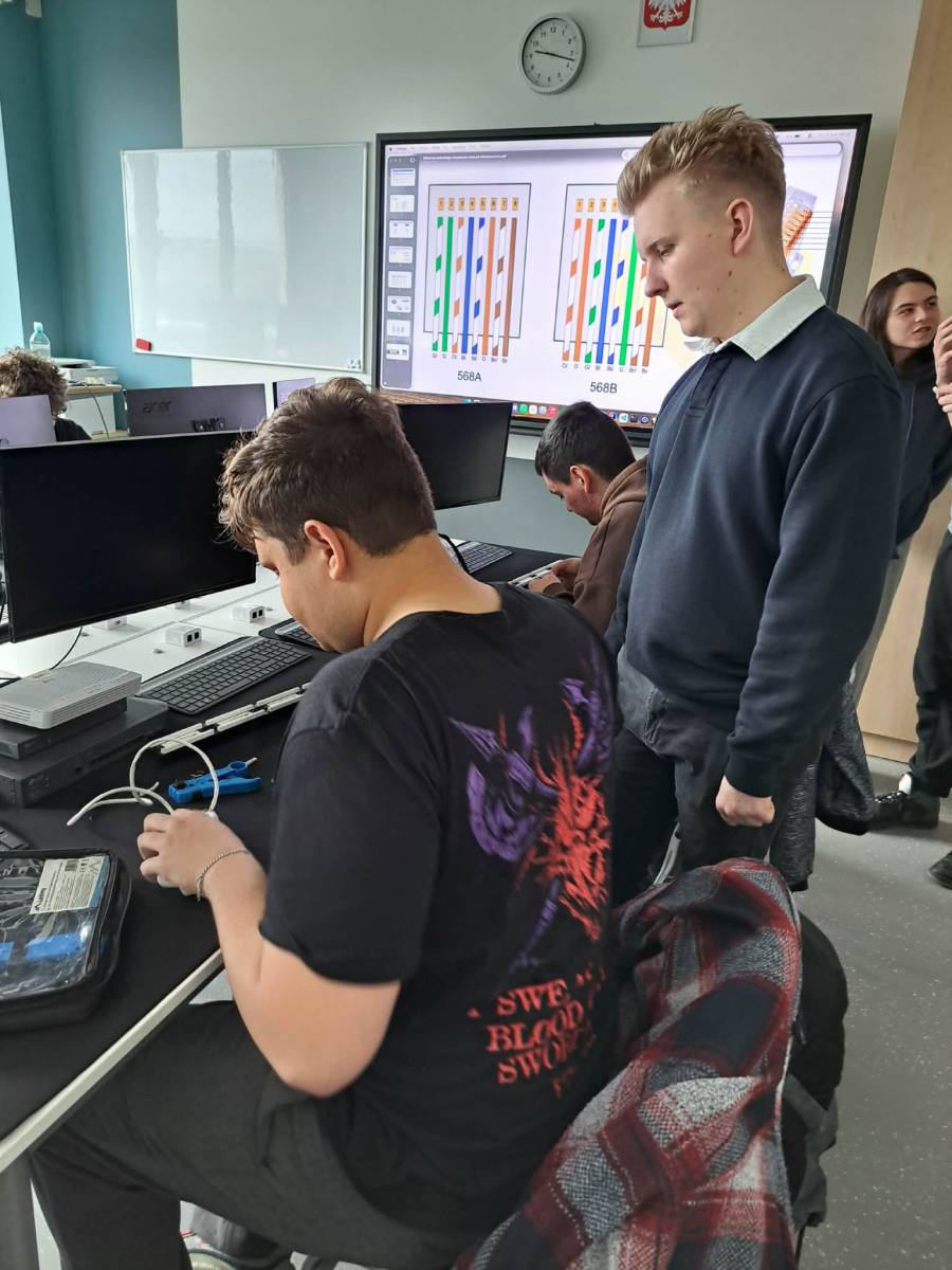 A kirándulást követően ellátogattunk partneriskolánkba, a Technikum Informatyczne im. Macieja Płažyńskiego frissen átadott, új épületébe. Az iskola Lengyelország legjobb informatikai technikuma, ahol bekukkantottunk néhány jól felszerelt terembe és vendégül láttak minket.