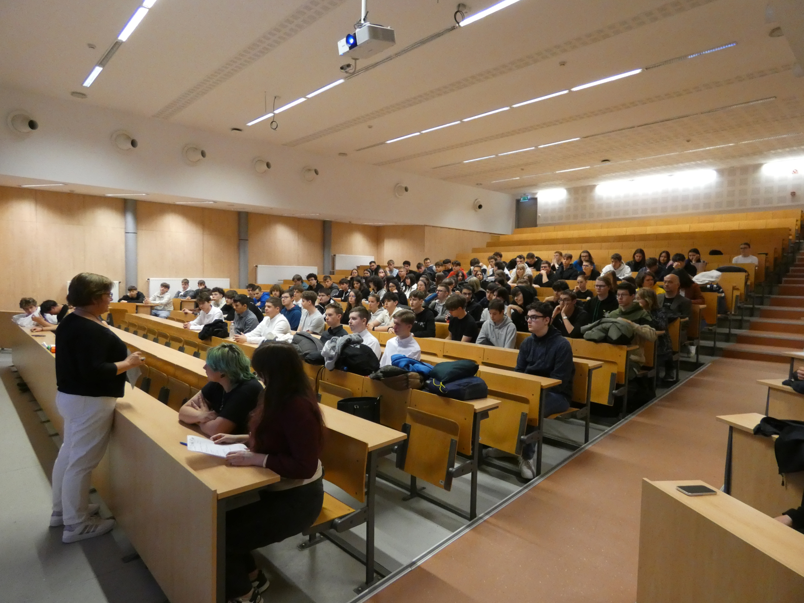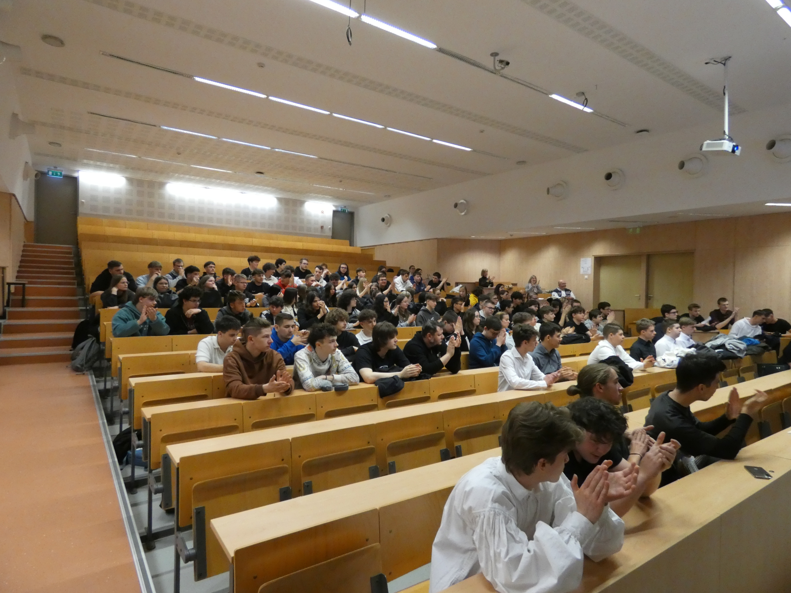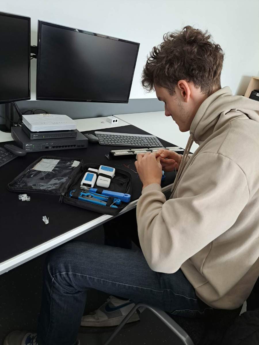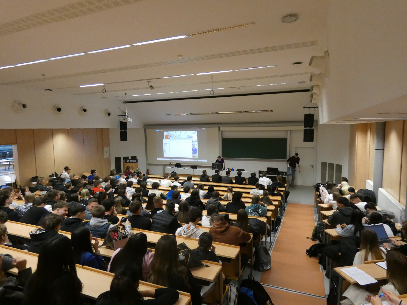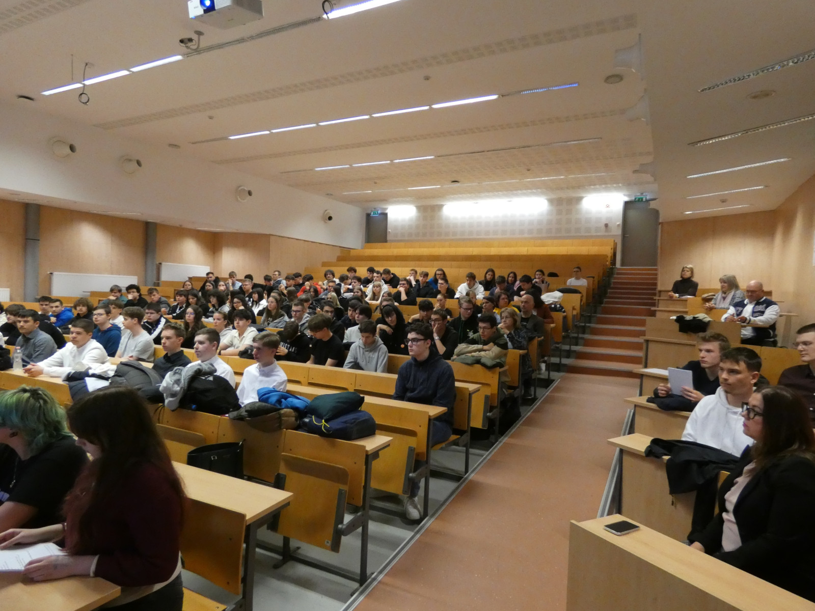A kirándulást követően ellátogattunk partneriskolánkba, a Technikum Informatyczne im. Macieja Płažyńskiego frissen átadott, új épületébe. Az iskola Lengyelország legjobb informatikai technikuma, ahol bekukkantottunk néhány jól felszerelt terembe és vendégül láttak minket.