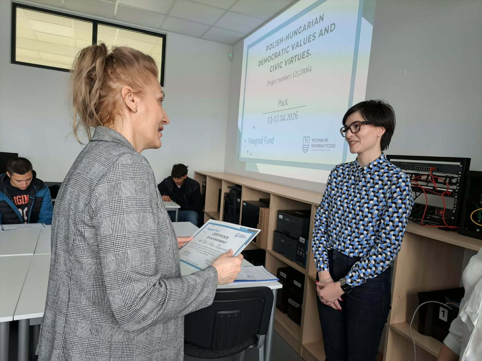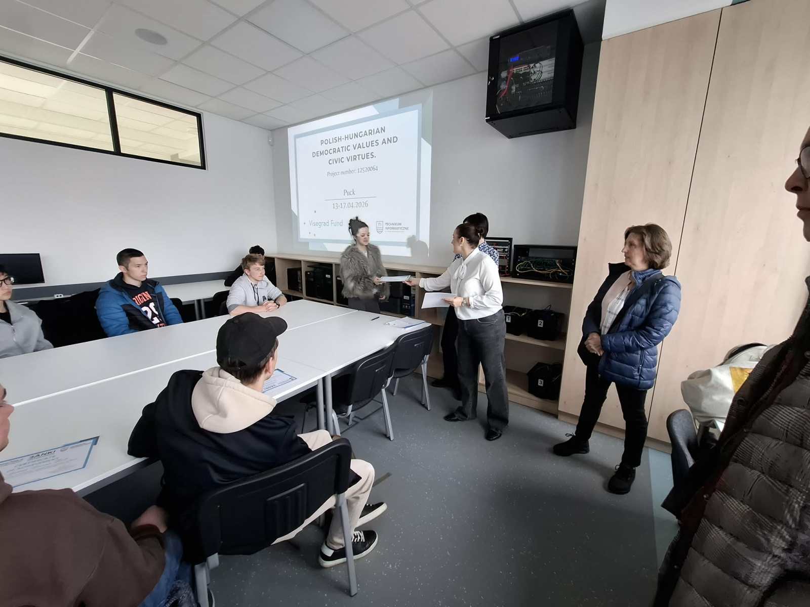 A mai napot ismét a partneriskolánkban kezdtük. Érdekes prezentációt hallgatunk a demokrácia fogalmáról, típusairól, kihívásairól. Beszélgettünk a lengyel és magyar parlament működéséről, a választási rendszerekről, a politika tantárgyról a lengyel iskolákban. Majd teszteltük tudásunkat az elhangzottakból.