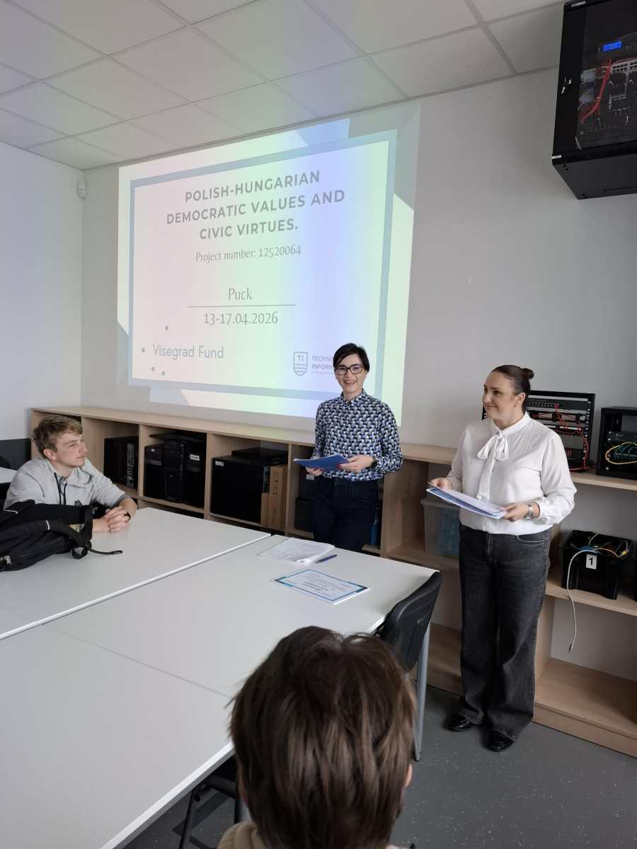 A mai napot partnerintézményünkben, a Technikum Informatyczne im. Macieja Płżyńskiegoban töltöttük. Először Lengyelországról hallgattunk meg egy nagyon érdekes prezentációt. Az előadó mesélt Lengyelország földrajzi adottságairól, nemzeti parkjairól, a kasuba régióról, a lengyel gazdaságról, gasztronómiáról, turisztikai látványosságokról, hírességekről. Az előadást követően diákjaink együtt játszottak egy ki-kicsoda játékban. Majd a lengyel diákokkal ellátogattunk Puck nevezetességeihez, ahol vendéglátóink meséltek a fontosabb helyszínekről, történelmi eseményekről, személyekről, legendákról. A nap zárásaként a lengyel és magyar történelem közös eseményeiről hallgattunk meg egy tartalmas bemutatót és teszteltük a tudásunkat történelemből és híres karakterekről. Este teszteltük a lengyelek egyik nemzeti tészta ételét: a pirogot.