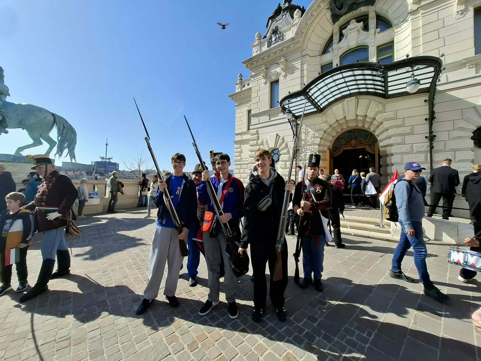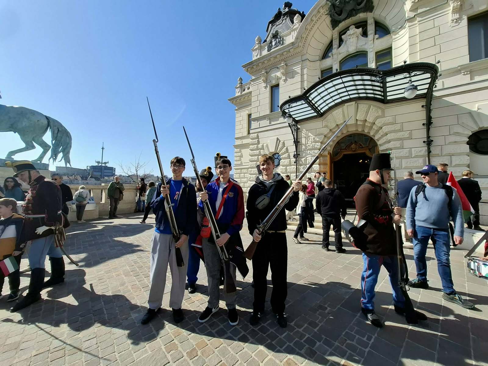 A Visegrad Fund projekt első napját, a nemzeti ünnepünket diákjaink Budapesten töltötték a partner intézményünk lengyel tanulóival. A Budavári Palotanegyed tökéletes helyszínnek bizonyult a közös megemlékezésre. Miután mindenki megismerte és feltűzte a forradalom szimbólumát, a kokárdát, együtt megcsodáltuk a koronázó templomunkat, a Mátyás-Templomot és a Halászbástyát, felidéztük az 1848-49 forradalom és szabadságharc a helyszínhez kapcsolódó eseményeit, a Nemzeti Galériában a magyar festészet mestermunkáit tekintettük meg, az Országos Széchényi Könyvtárban a nyílt napon a különleges termekben kokárdát készíthettünk, a Csikós udvarnál huszárokkal találkoztunk, a Lovardánál együtt táncoltunk a néptáncosokkal, kipróbáltuk a korabeli fegyvereket és meghallgattuk a Budapest Huszárzenekar verbunkos nótáit.
